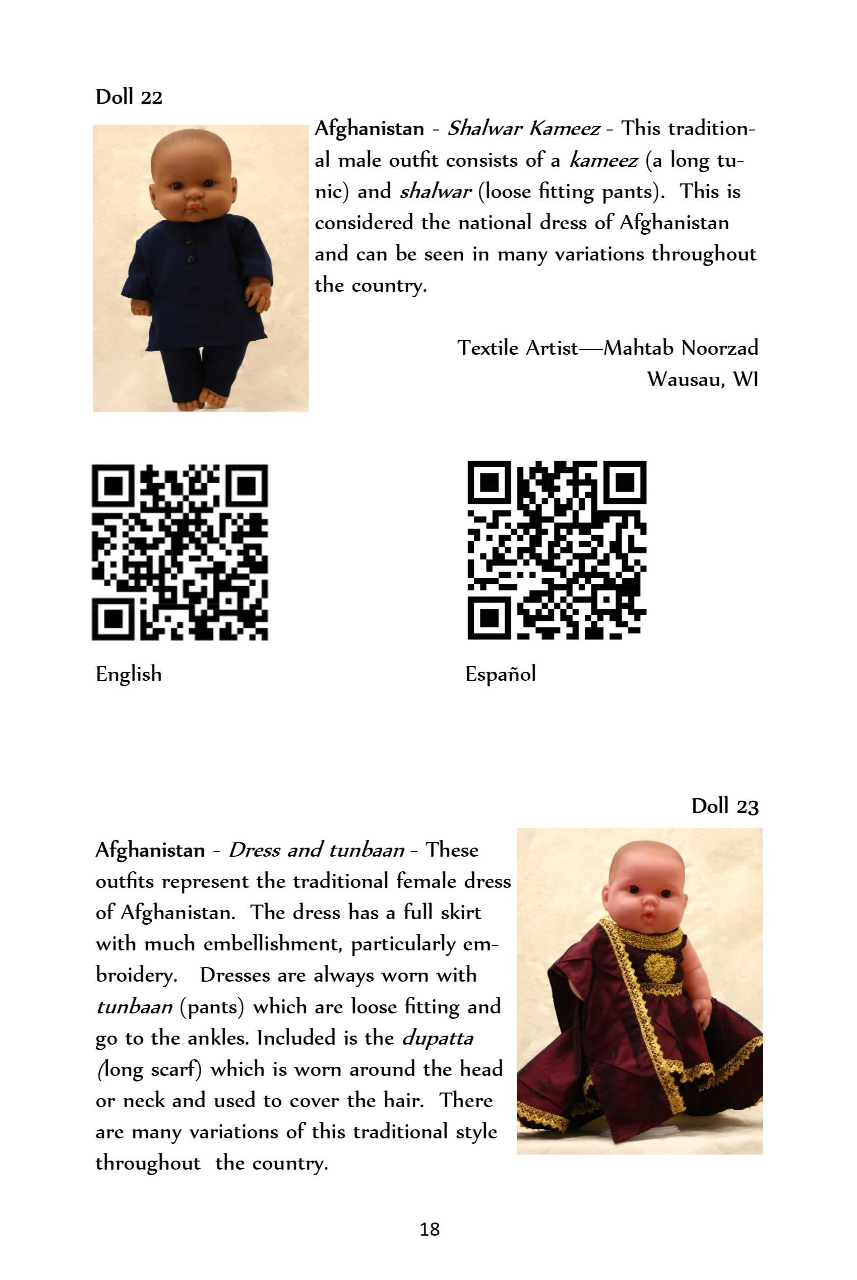 This is a free program offered to schools and youth organizations throughout North Central Wisconsin beginning in January 2025.The program will include a short film featuring some of our textile artists, hands-on interaction with the dolls, and a craft associated with one of the cultures represented for participants to take home.